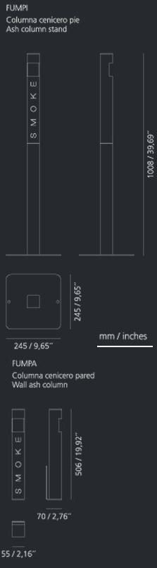 Aluminium ash tray column lacquered with non-flammable polyester painting. Its sealed deposit is designed to store cigarette ends reducing smoke and bad smell.
