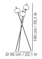 Floor lamp. Opal diffuser made of two layers of mouth blown glass. Metallic body available in three coating finishes: black, copper and brass.