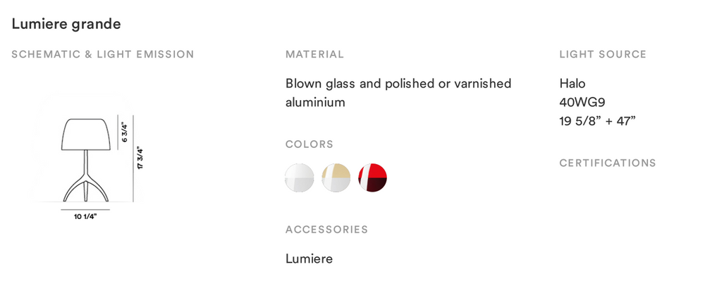 The Lumiere table lamp was designed by Rodolfo Dordoni back in 1990 and remains a bestseller of the Foscarini brand. Still modern and contemporary, the table lamp has a classic and chic silhouette with a domed glass lampshade and a metal tripod base. With sleek and clean lines, this lamp will add a touch of class to the room whilst still fitting into modern interiors. The Lumiere table light comes in 4 finishes, white, warm white, cherry red and turquoise, with a choice of base colour, aluminium, black chrome or champagne, so you can have a personalised light for your space. The table light also is available in a small or large size and a non-dimmable or dimmable version.