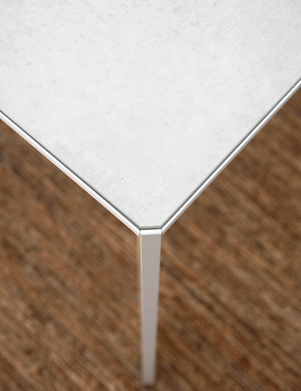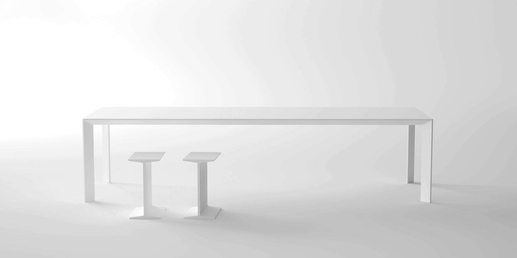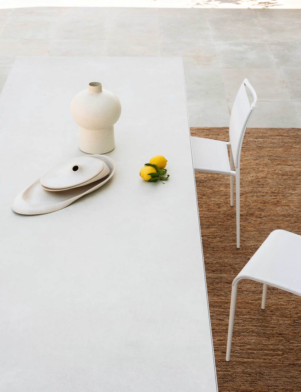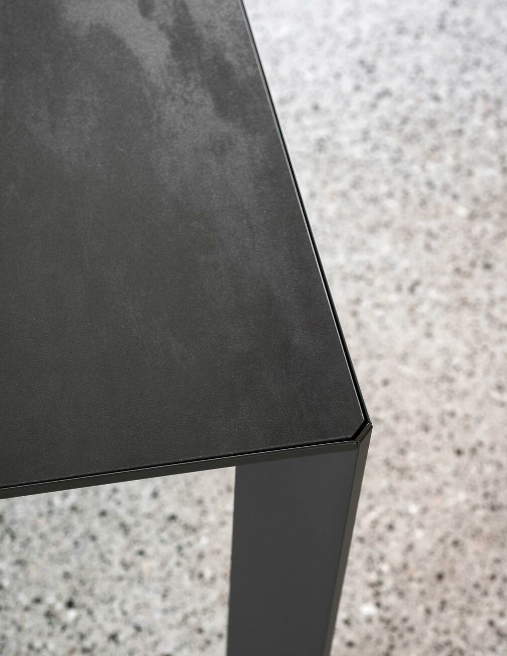 An exemplary design expression that enhances form without any redundancy. The Mac table, with its steel extrusion structure, stands out for its geometric elegance. Its clean and defined lines give a contemporary look to the surrounding environment. Crafted with precision and care, every angle and detail reflect a minimalist and functional design. The steel, with its strength and durability, provides a solid and stable base on which the entire structure rests, the inset tabletop is precisely designed, giving style and character to the product. A perfect synthesis of formal rigor and aesthetic purity, the Mac table interprets design with restraint and precision. Its extruded steel structure, defined by precise geometries and harmonious proportions, lends the piece a discreet yet contemporary elegance. Every element is carefully studied to express a balance between function and beauty: sharp edges, smooth surfaces, and calibrated details come together in a coherent composition. Steel, both technical and refined, ensures solidity and visual continuity, while the top, perfectly set into the frame, creates a bold and sophisticated outline that gives character to any environment.