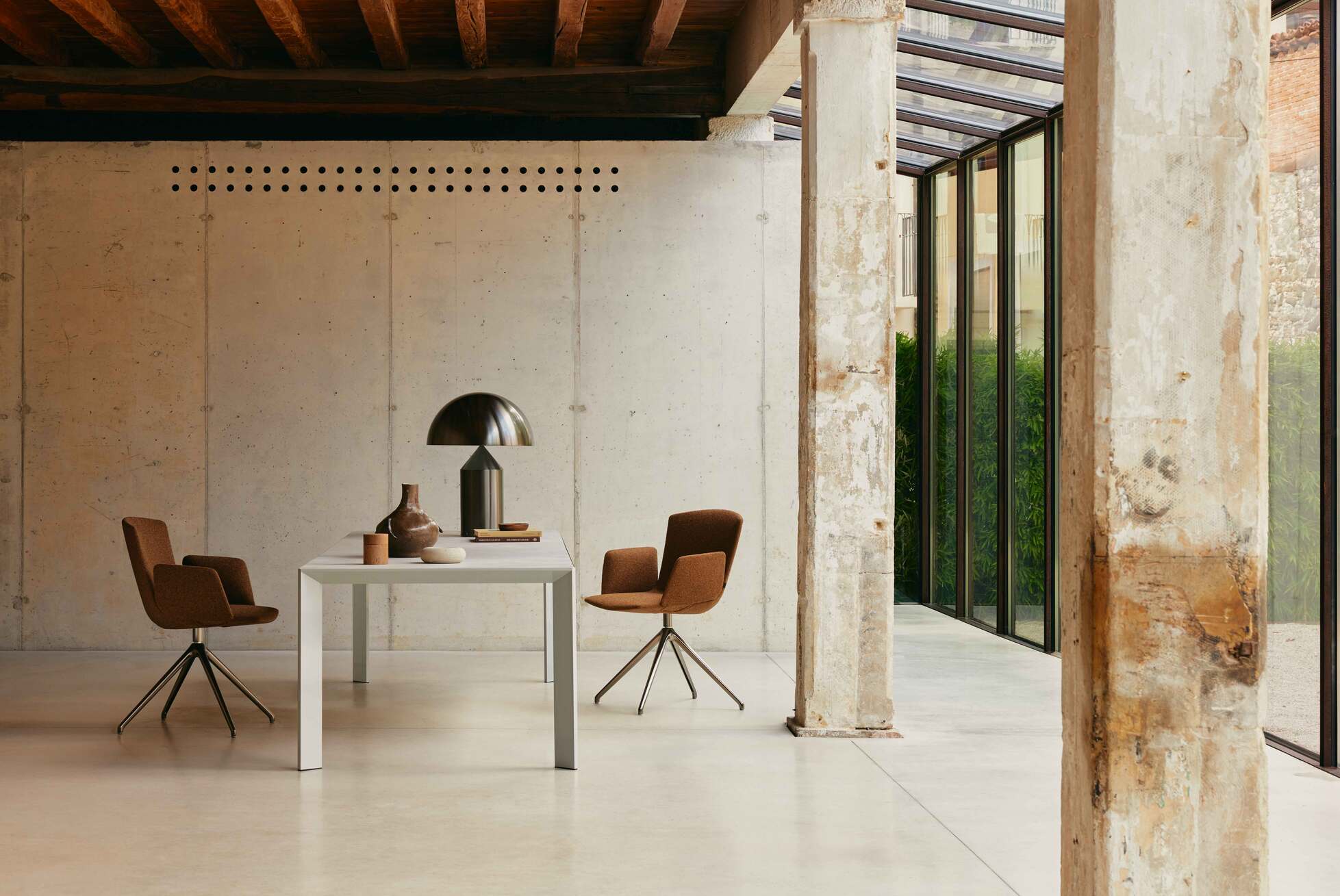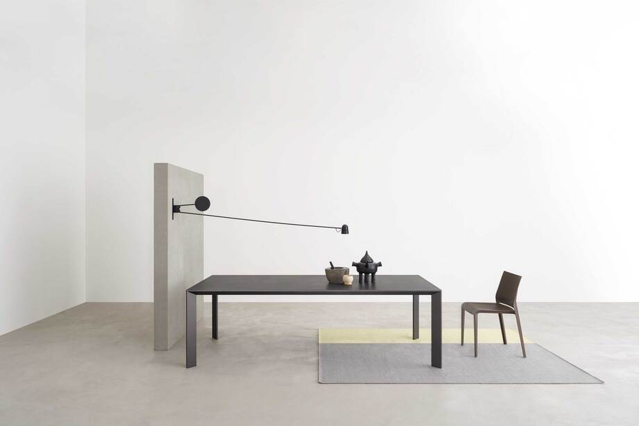 A sophisticated table designed by Pierluigi Cerri, Mac is a masterful concept of geometric and constructive rationality with an almost architectural line.