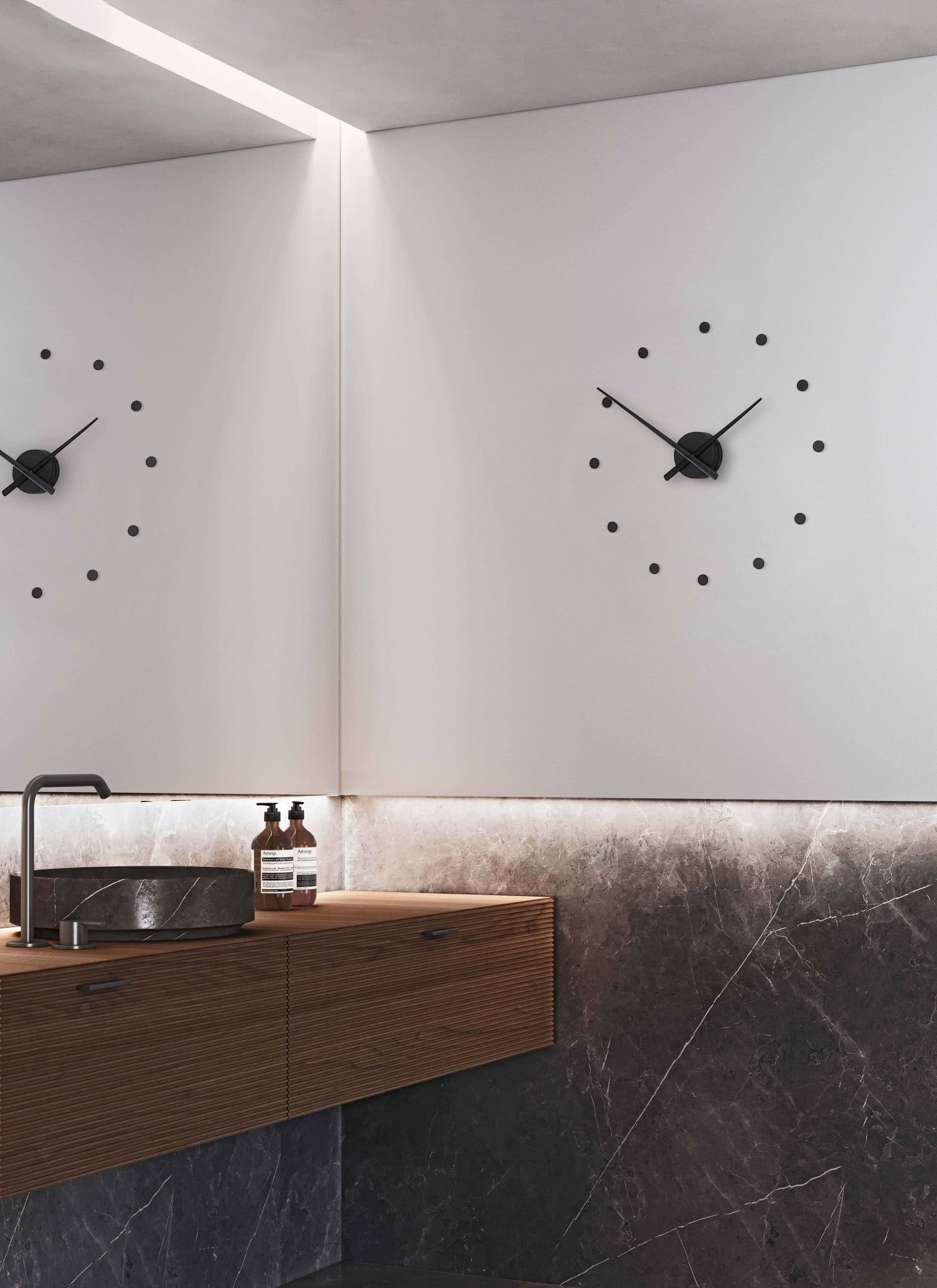 The OJ mini is a new concept in wall clock with pioneering looks and versatility. With it's minimalist and modern design it is an elegant clock and a very stylish piece indeed. It can be adapted to an endless number of spaces. It is suited to a wide range of places such as the home, office, shop, reception and even in places of recreation such as gyms, swimming pools etc. Trouble free installation with adhesive hour markings.