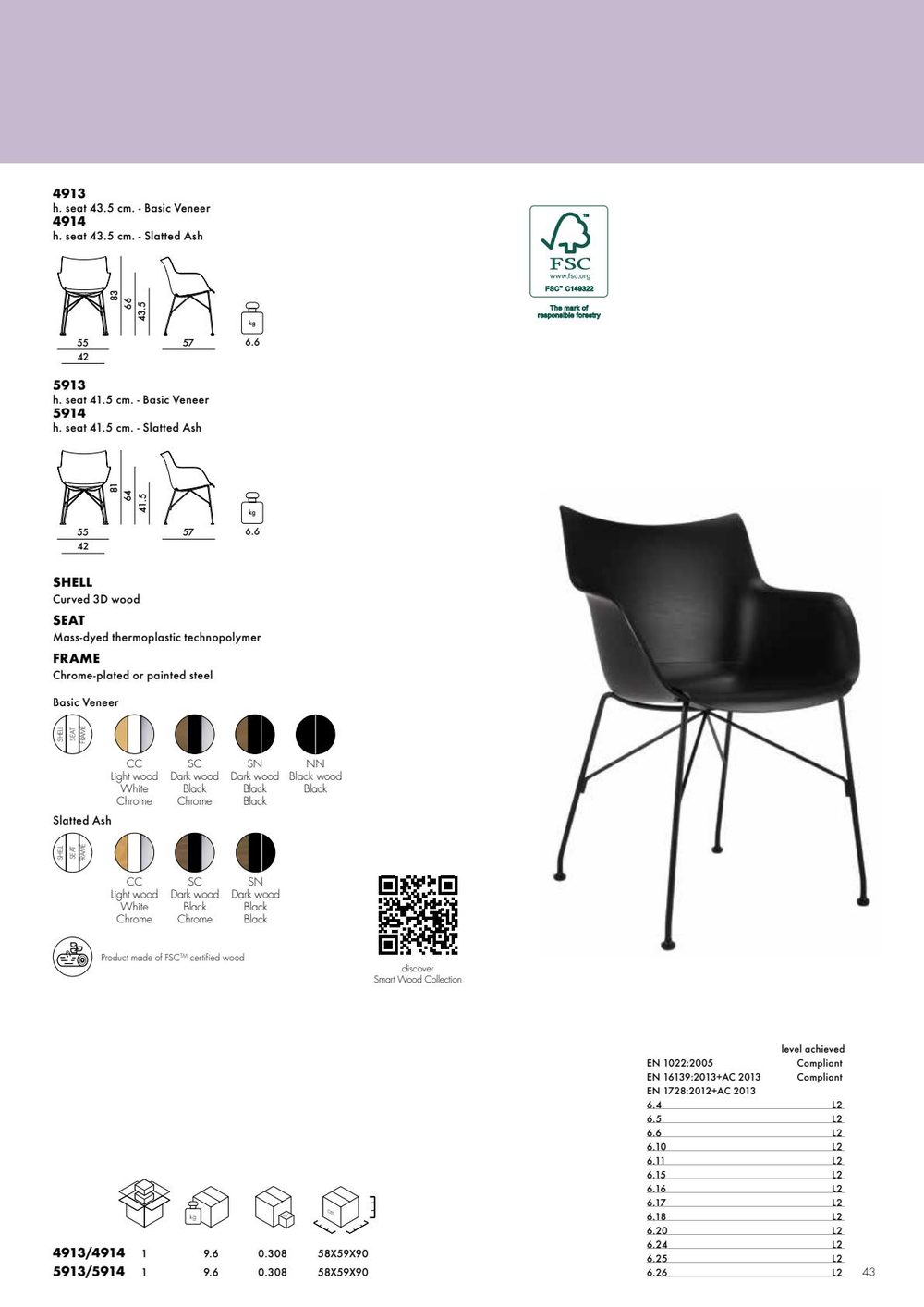 For this season, the Smart wood collection comprises the regal K/Wood armchair, also available with leather-upholstered seat, plus matching S/Wood footrest with the same finishes, and the Q/Wood (with black or white plastic seat) and P/Wood chairs, which feature unique woodworking that combines timeless elegance with contemporary shapes.