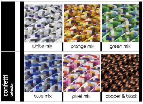 It is avalaible in 4 wooden colors ( natural, oak, walnut , ebony ) and more than 40 cable color combinations. The metal is either black or white.