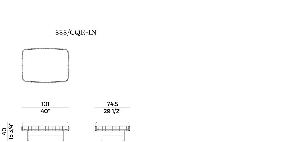 The rectangular Ropu pouf consists of an embossed painted metal structure and an upholstered seat cushion, padded in fire retardant polyurethane foam, upholstered in the fabrics and leathers as per collection. The frame is hand woven in hide-leather cord.
