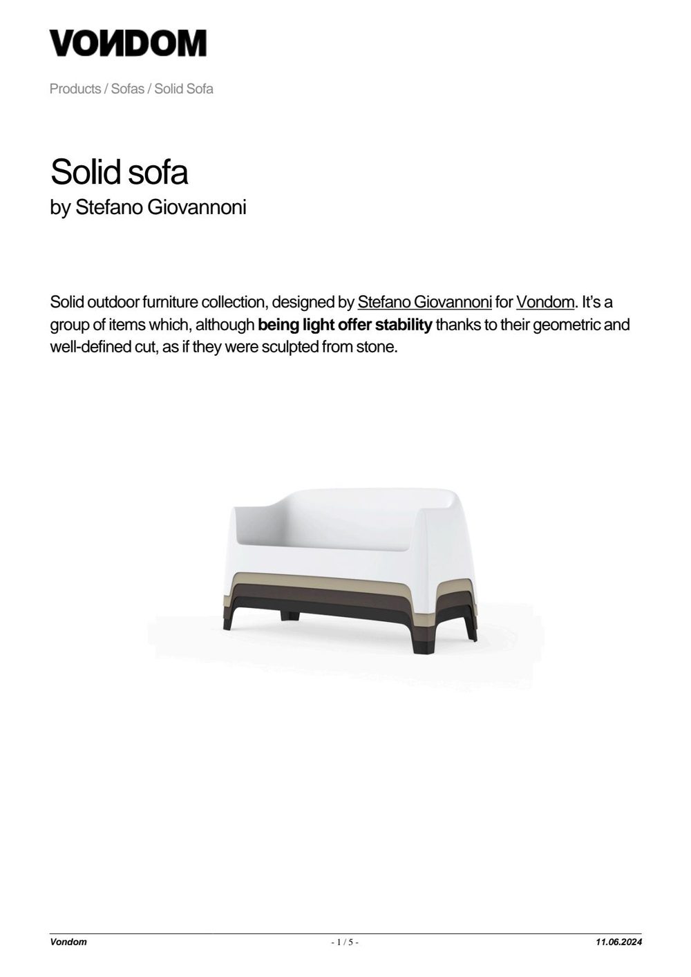 Solid designed by Stefano Giovannoni for Vondom is a sofa. Its functional design and the lightness offer stabilty thanks to their geometric and well-defined cut. Available in multiple finishes. For indoor or outdoor use.