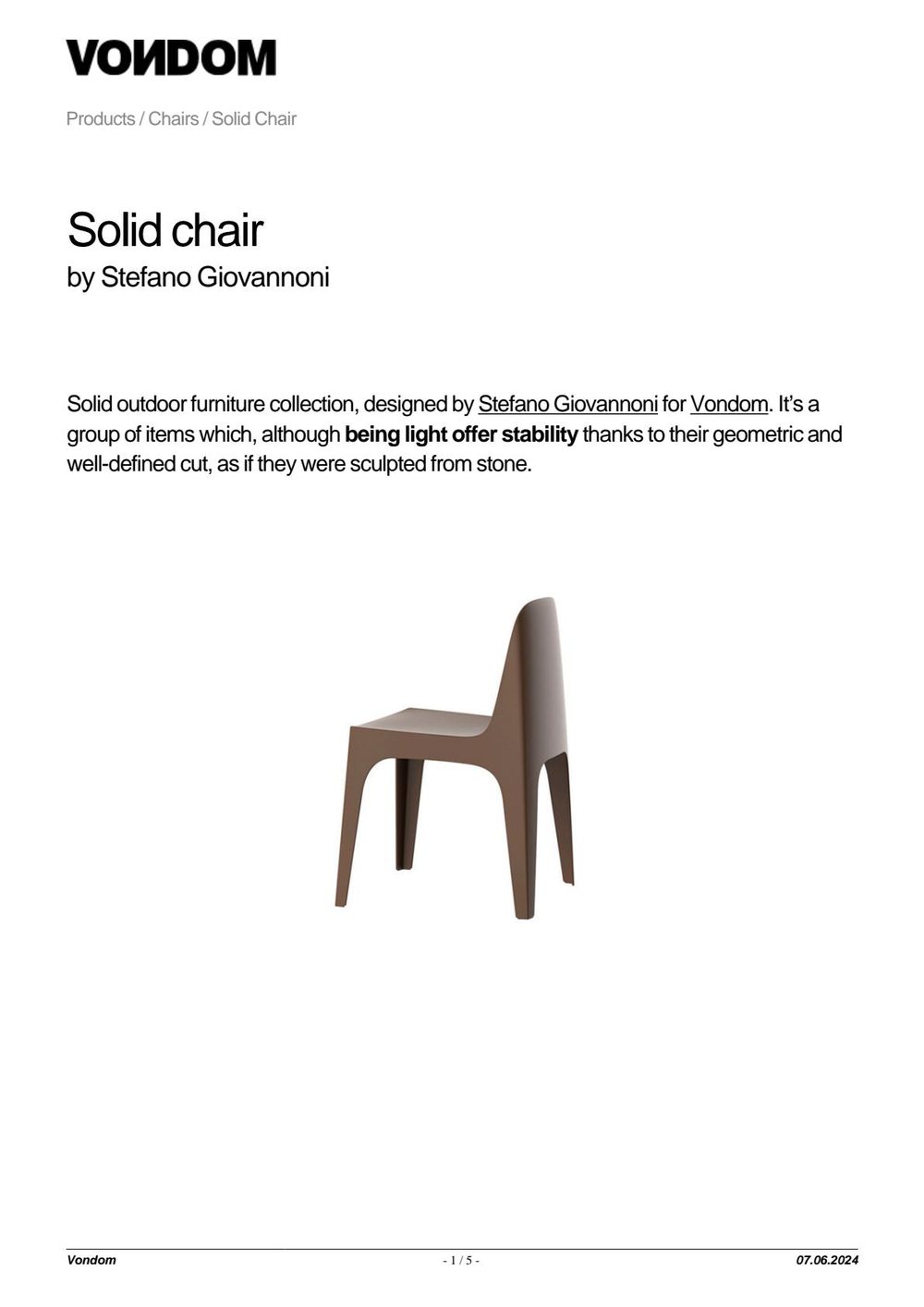 Solid outdoor furniture collection, designed by Stefano Giovannoni for Vondom. It’s a group of items which, although being light offer stability thanks to their geometric and well-defined cut, as if they were sculpted from stone.