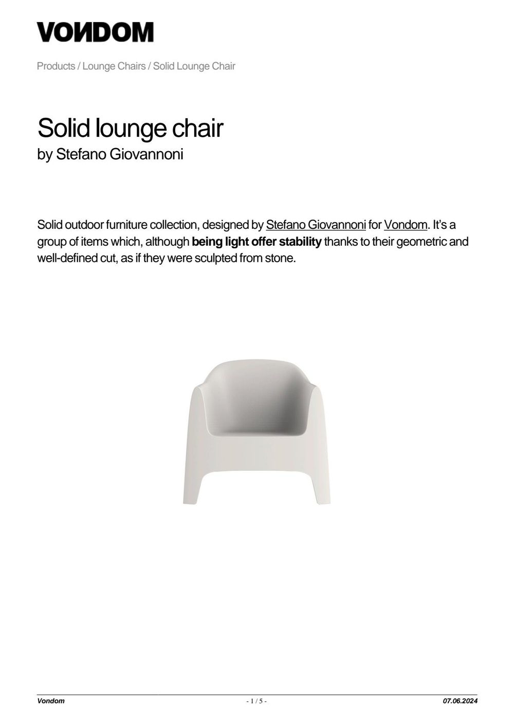 Solid outdoor furniture collection, designed by Stefano Giovannoni for Vondom. It’s a group of items which, although being light offer stability thanks to their geometric and well-defined cut, as if they were sculpted from stone.