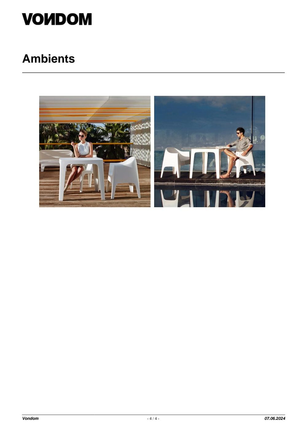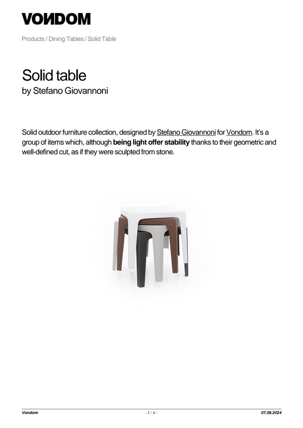 Solid outdoor furniture collection, designed by Stefano Giovannoni for Vondom. It’s a group of items which, although being light offer stability thanks to their geometric and well-defined cut, as if they were sculpted from stone.