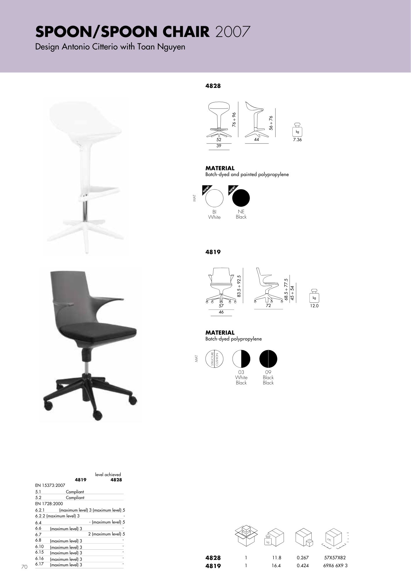 Furthermore, thanks to a sophisticated design solution, the gas lift pump adjusts the height between 56 and 76 cm and is perfectly inserted into the stem. In the same ingenious fashion, the handle which regulates the mechanism is perfectly concealed inside the seat. Spoon lends itself to any surrounding: kitchen benches, bars and fashionable, nonconformist-style restaurants.