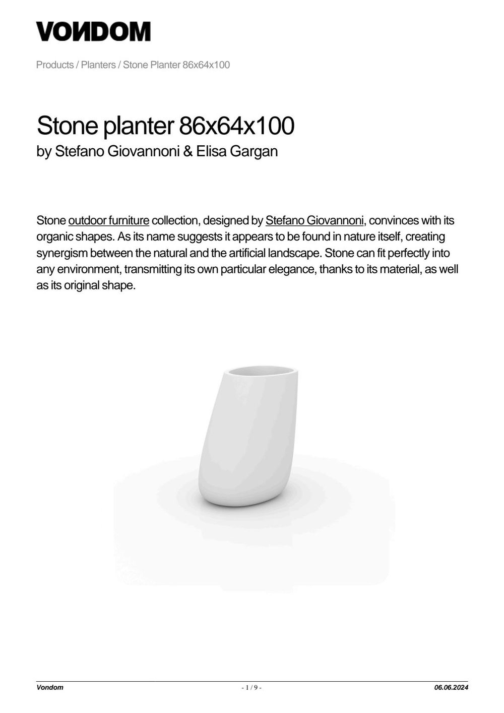 Pot made of polyethylene resin by rotational moulding. 100% Recyclable. Item suitable for indoor and outdoor use. Available in different finishes.