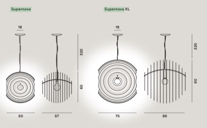 Inspired by space and the newly born star, the Supernova pendant light was designed by Ferruccio Laviani in 2000. Still a current and trend-setting light, this pendant is made from 7 pairs of aluminium discs, formed into a sphere to evoke spatial elements. The light source sits in the middle of the globe, being reflected off the multiple discs in all directions.