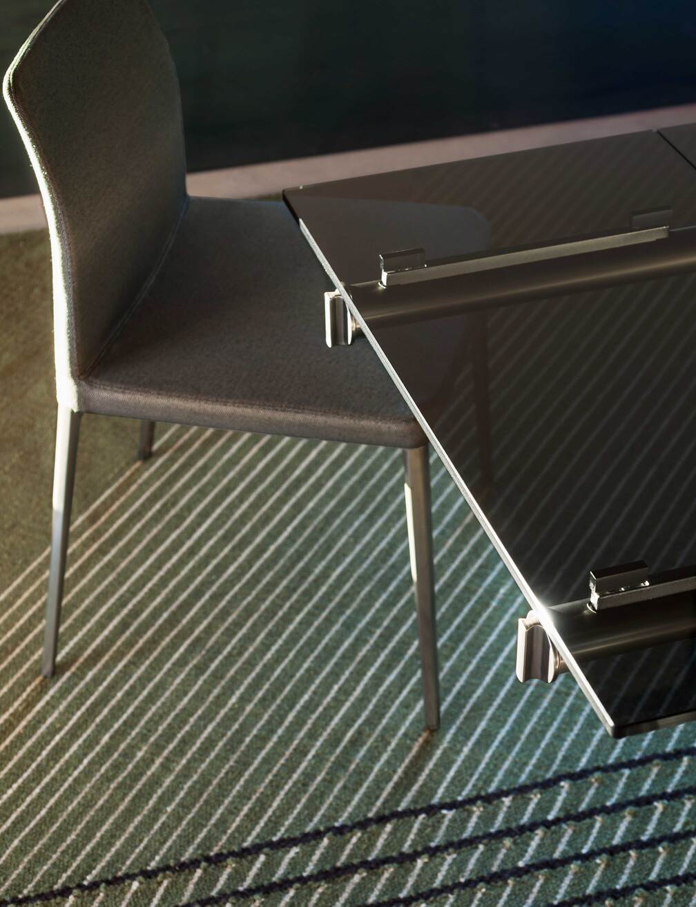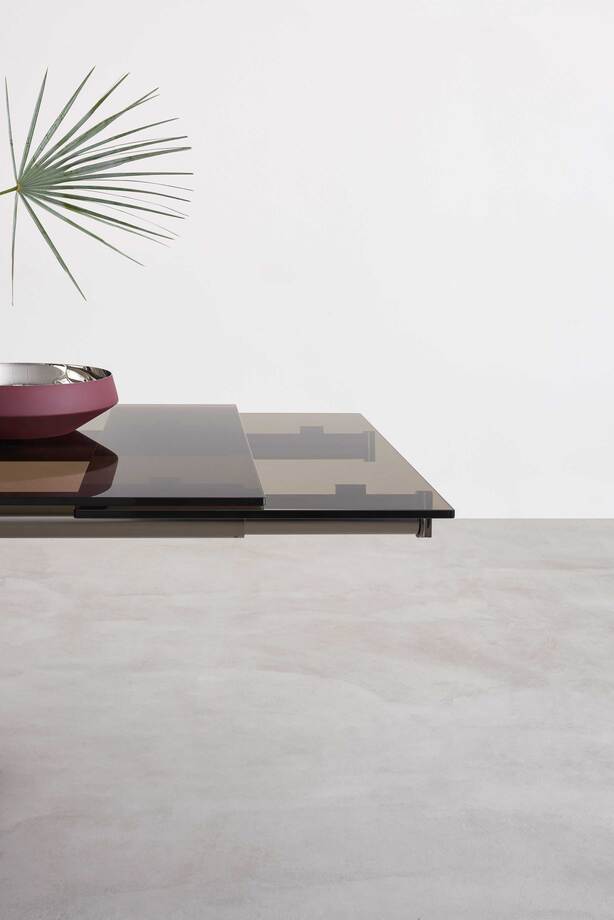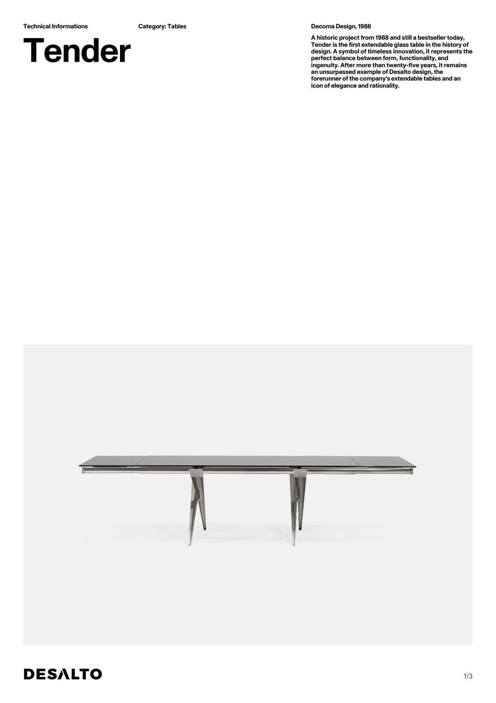 Tender is the first extendable glass table in the history of design. A symbol of timeless innovation, it represents the perfect balance between form, functionality, and ingenuity. After more than twenty-five years, it remains an unsurpassed example of Desalto design, the forerunner of the company’s extendable tables and an icon of elegance and rationality.