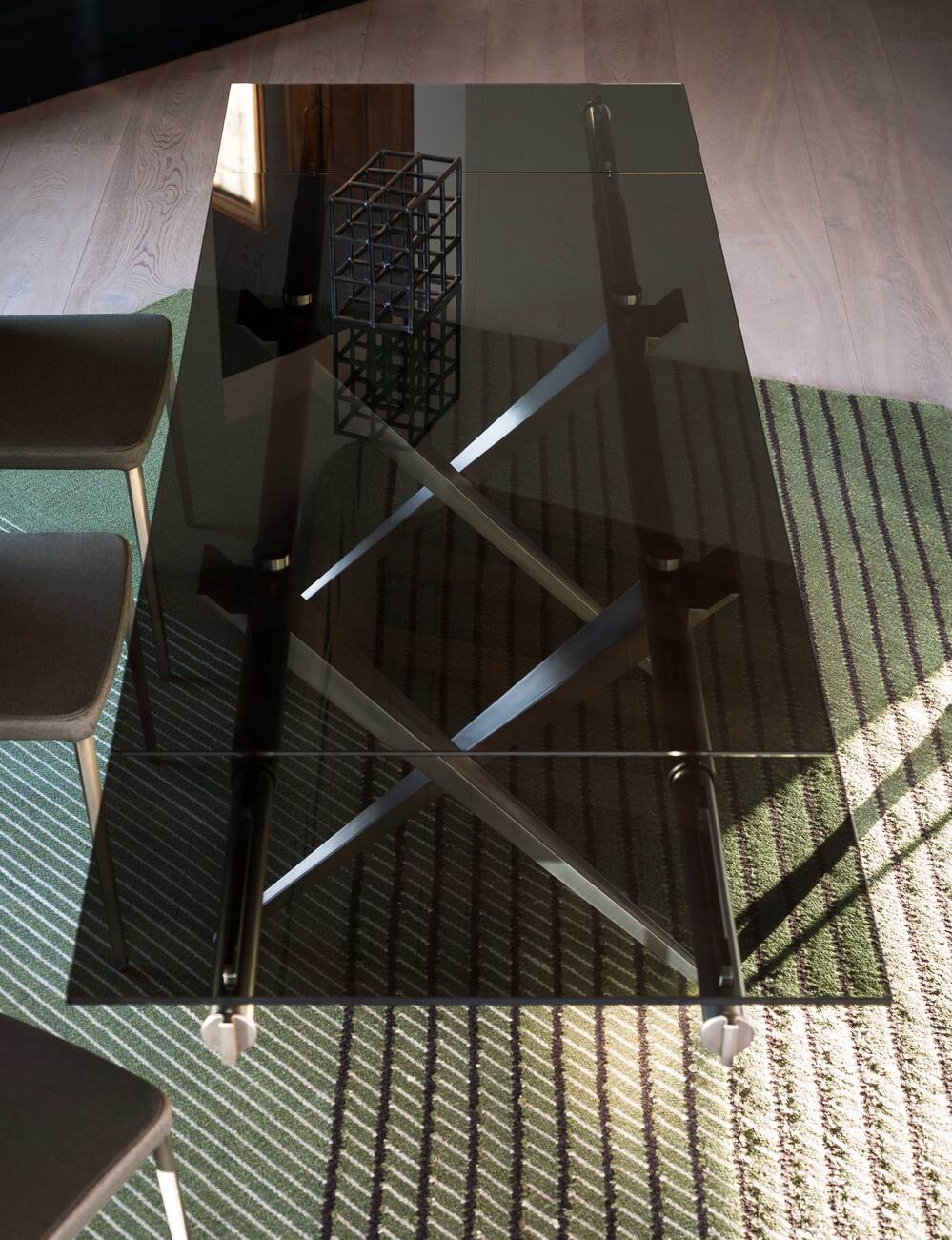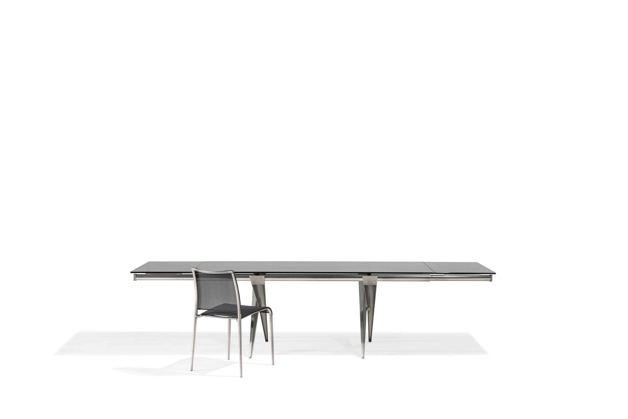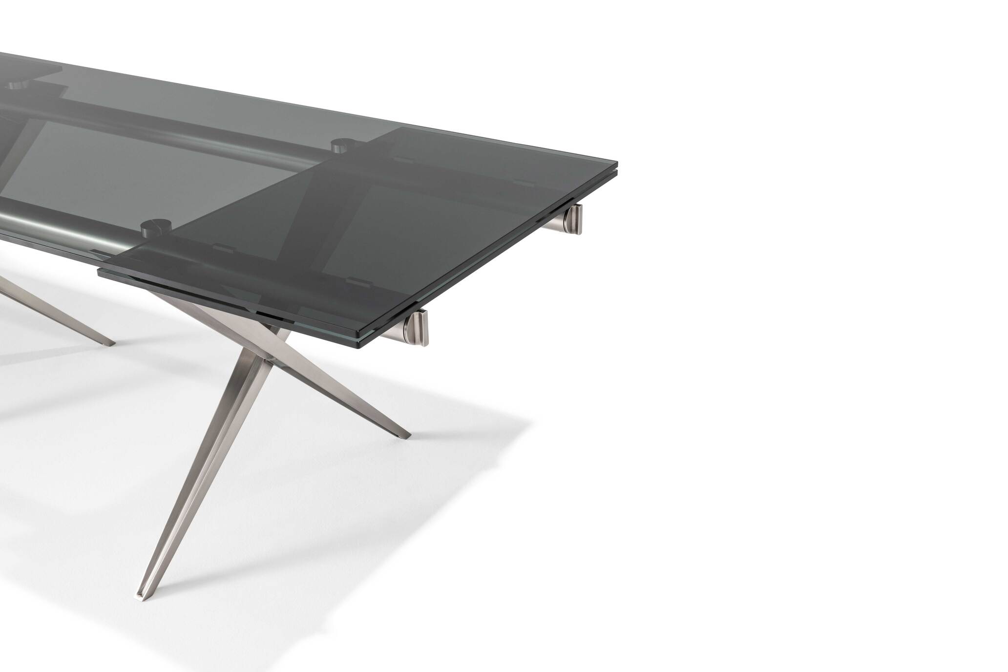 Tender is the first extendable glass table in the history of design. A symbol of timeless innovation, it represents the perfect balance between form, functionality, and ingenuity. After more than twenty-five years, it remains an unsurpassed example of Desalto design, the forerunner of the company’s extendable tables and an icon of elegance and rationality.