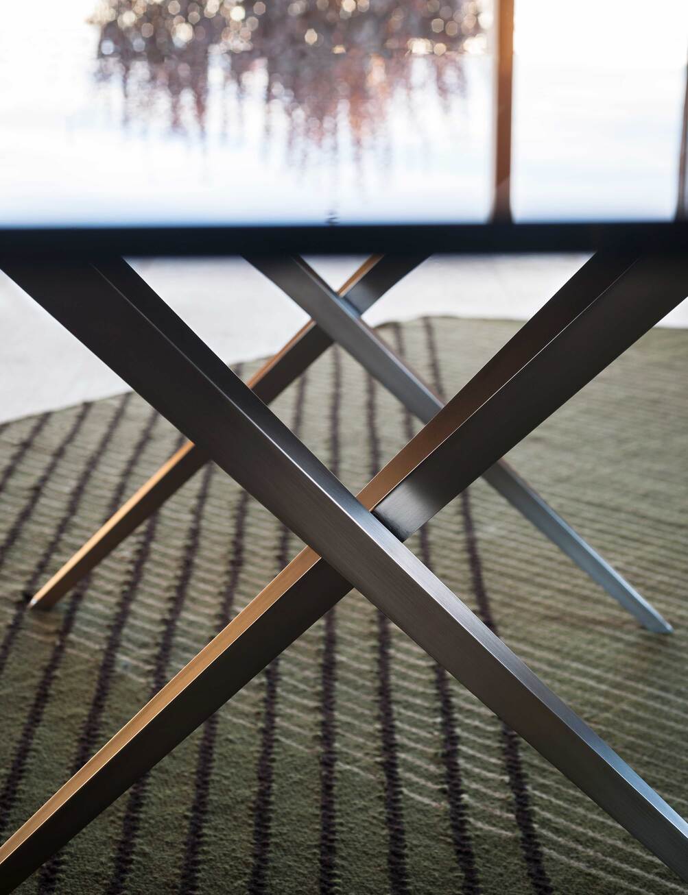 Tender’s extension system is an example of functional engineering. Two telescopic tubes integrated into the frame allow the table to extend simultaneously at both ends, ensuring smooth and precise movement. This innovative mechanism adapts the table to different space and conviviality needs while maintaining the solidity and elegance of the original design.