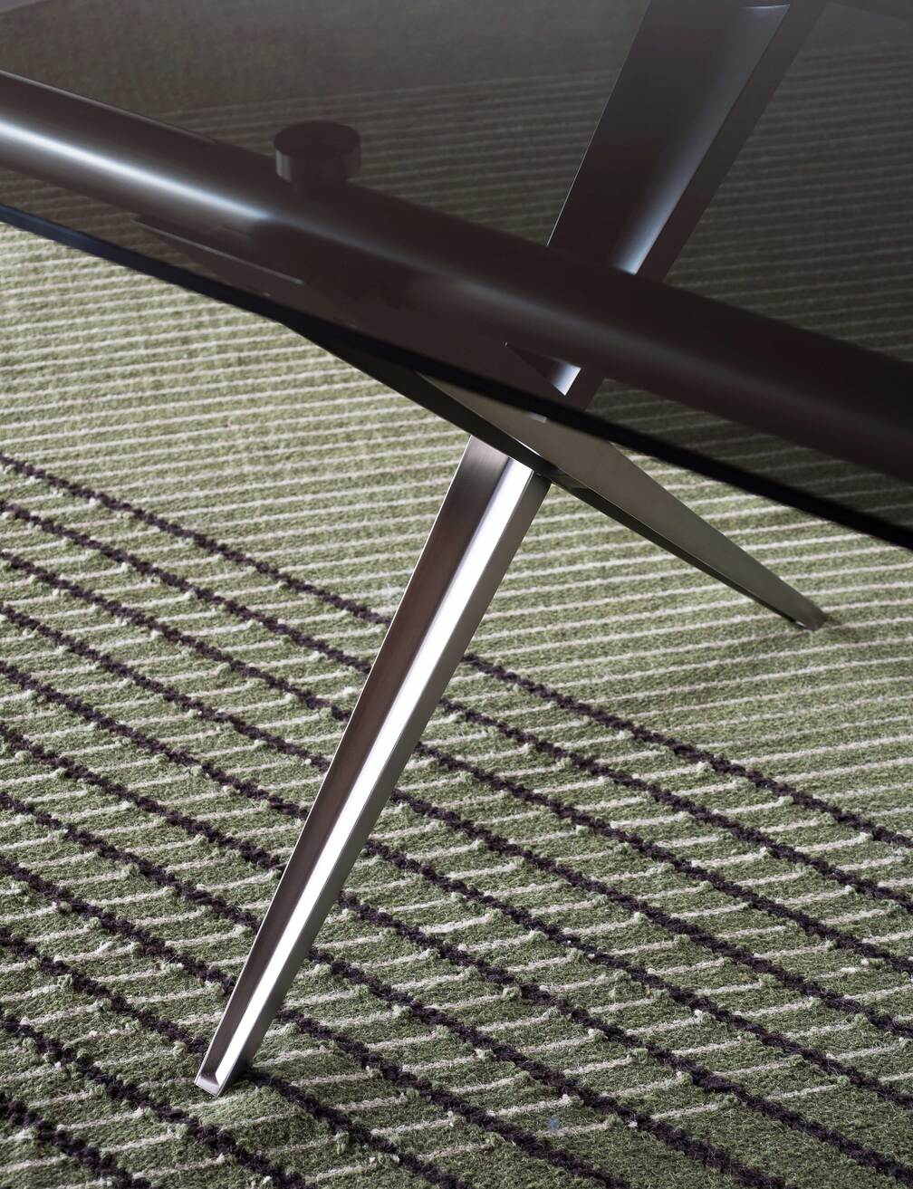 The Tender table stands out for its timelessly contemporary design. Its robust metal frame supports a glass top, adding transparency and elegance to the overall composition. The combination of different materials emphasizes the visual lightness of the table, making it a versatile piece for any environment.