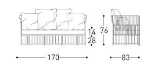 Low sofa : h. 76 w. 170 d. 78