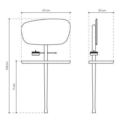 Inspired by a sensitive, modern woman, and without forgetting functionality, we have taken attention to the softness in shapes and materials. The seat can be easily kept under the dressing table, in a warm hug with the central column, and “beauty secrets” can be hidden inside the small and charming wooden box.