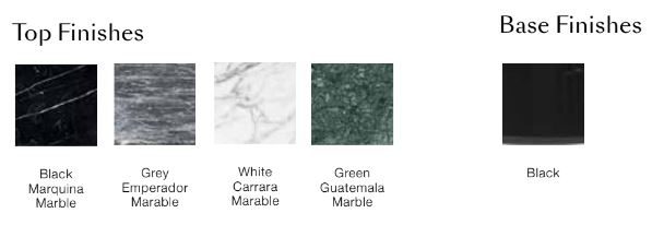 Available in white, black, green marble or smoked glass. The base comes in black.