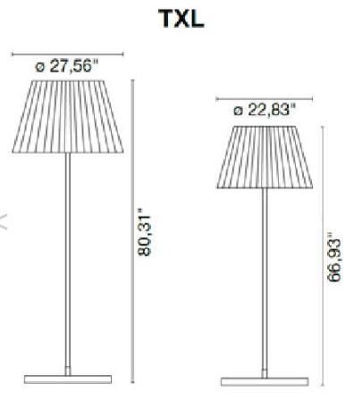 Designed to illuminate gardens and terraces, TXL emits an extremely warm light, much like an indoor lamp. Tough and inspiring, the floor model sits on a slate base which supports a voluminous shade made in fiber glass coating with plastic material. The pendant model stands out for its lightness and is suitable for illuminating outdoor tables.