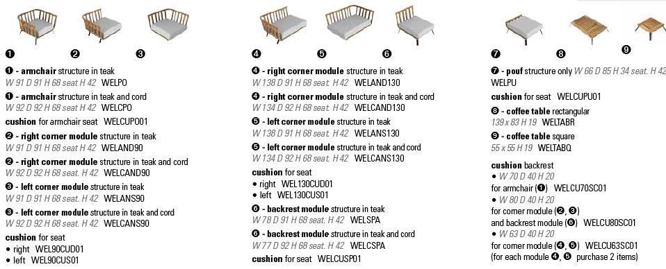 Sofa system that can be arranged in various compositions. 2 seater, 3 seater and corner. Along with matching armchair and coffee tables. Version with teak frame and teak frame with hand woven cord fabric.