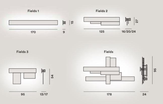 The Fields wall light was designed by Vicente Garcia Jimenez after he was inspired from satellite views of the earth. This wall light is stunning and is based around a modular design, with 3 distinct parts that can be bought individually. Each version, Fields 1, 2 and 3 have their own design, characterised by a rectangular and graphic shape. You can buy multiple of each one to construct how you want it on the wall, having the ability to create a unique light feature.