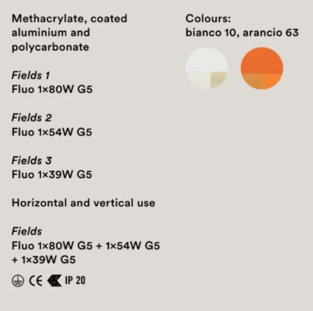 The Fields wall lamp can also be bought as a pre-constructed design, combing all 3 elements in one wall light. This light is available in 2 colours, a subtle white or vibrant orange, to create the effect you want. The design means the light is both diffused and reflected, producing a bright yet soft glow, perfect for many spaces. Use as a piece of lighting artwork or as a functional light in multiples or alone in both domestic and commercial settings.