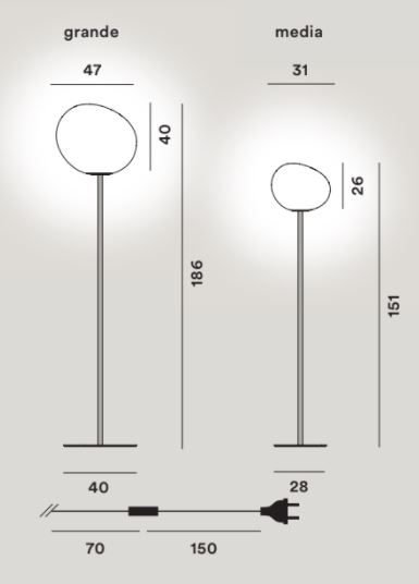 A part of the Foscarini Gregg collection, the Gregg floor lamp is charactised by its uniquely shaped lampshade and elegant metal structure. Taking inspiration from nature, the designers Ludovica + Roberto Palomba have created a shade that resembles a pebble, sitting atop a minimalist base and stem. The shade is made from blown glass and diffuses the light to create a nice, warm glow.