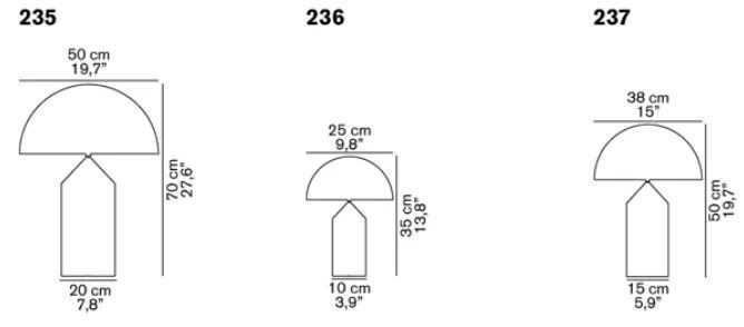 Designed in 1977 by Vico Magistretti, over the years, Atollo has become the archetype of the table lamp, winning the Compasso d’Oro in 1979 and completely revolutionising the way we imagine the classic bedside lamp. The geometric shapes that compose it – cylinder, cone and hemisphere – have resulted in a product that is decorative and essential at the same time, disconnected from the historical period and the fashions of the moment, and one that has now fully become one of the icons of Italian design. Atollo is available in three different sizes and in different finishes: opaline opaque metal/blown glass.