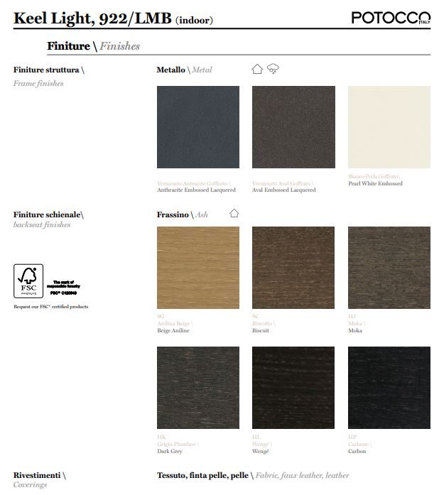 The Keel Light family has a backrest in solid ash wood, a structure in embossed metal rod painted with epoxy powders in anthracite, aval and pearl white finishes, and a padded seat with a rigid underlying shell, painted acrylic for outdoors, in the same color and fine embossing of the structure.