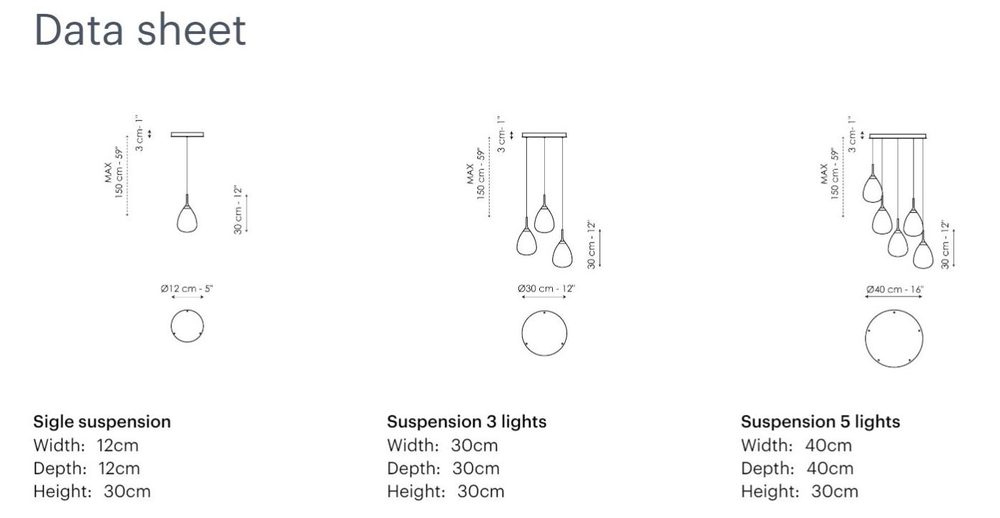 This image has been transferred to the luminaires of the Gocce lamp, which drop down from above to light up the space. The Gocce collection is based around the central element of two tear-shaped Pyrex glass bubbles, a transparent one on the outside and the other, featuring a satin finish, on the inside. The glass bubbles are connected to a metal rod, which supports them and contains a light source. The crystal droplets chandelier is available in a single version, or as part of a composition featuring three or five lamps, complete with ceiling rose.